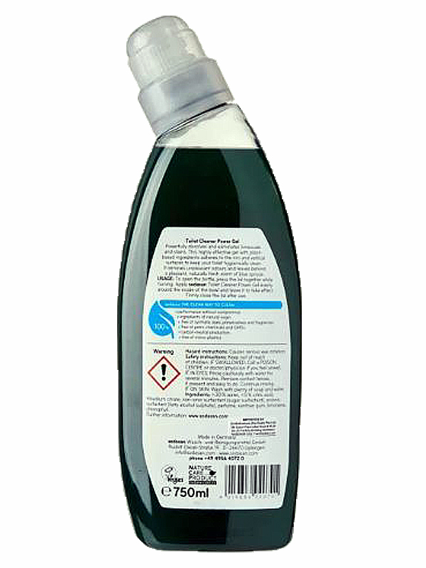Experience powerful cleaning with Sodasan’s Toilet Cleaner Power Gel. Formulated with highly effective, plant-based ingredients, this gel clings to the rim and vertical surfaces of your toilet, dissolving stubborn limescale and stains with ease. It eliminates unpleasant odours and leaves behind a naturally fresh scent of blue spruce, ensuring a hygienically clean and revitalized bathroom environment.